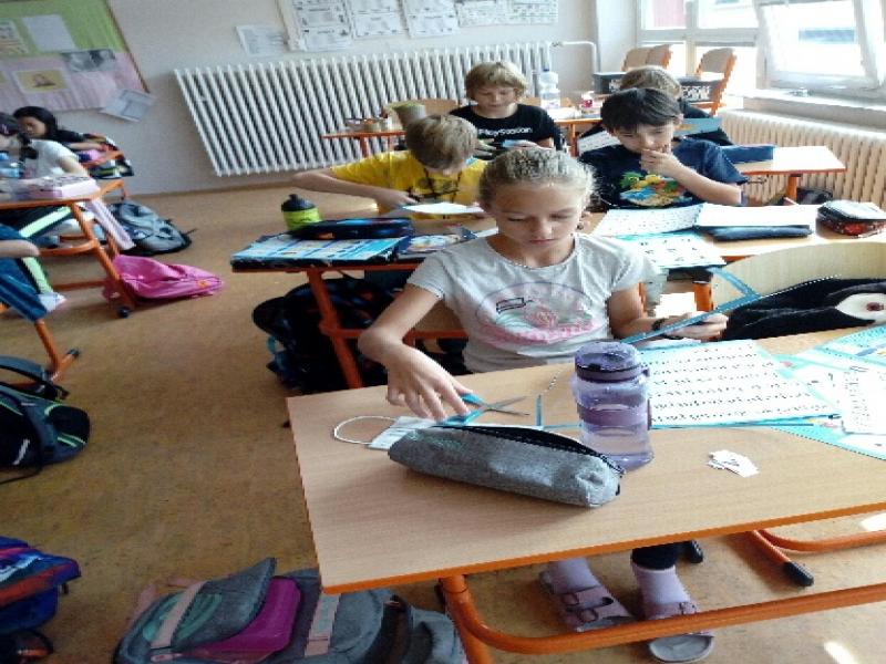 Žáci 5.C vymysleli, že by mohli pomoci třídě 1.B, protože společně sdílí chodbu. Svůj nápad dotáhli do konce a vystřihli prvňáčkům písmenka, která se budou co nevidět učit. Práce jim šla od ruky a měli radost, že právě oni přiložili ruku k dílu. Podívejte se na fotografie ze společného tvoření písmenek.
